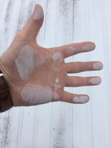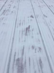 Objawy:Po dotknięciu powierzchni dłonią lub szmatką, pozostanie na niej pozostaje biały, sypki proszek.